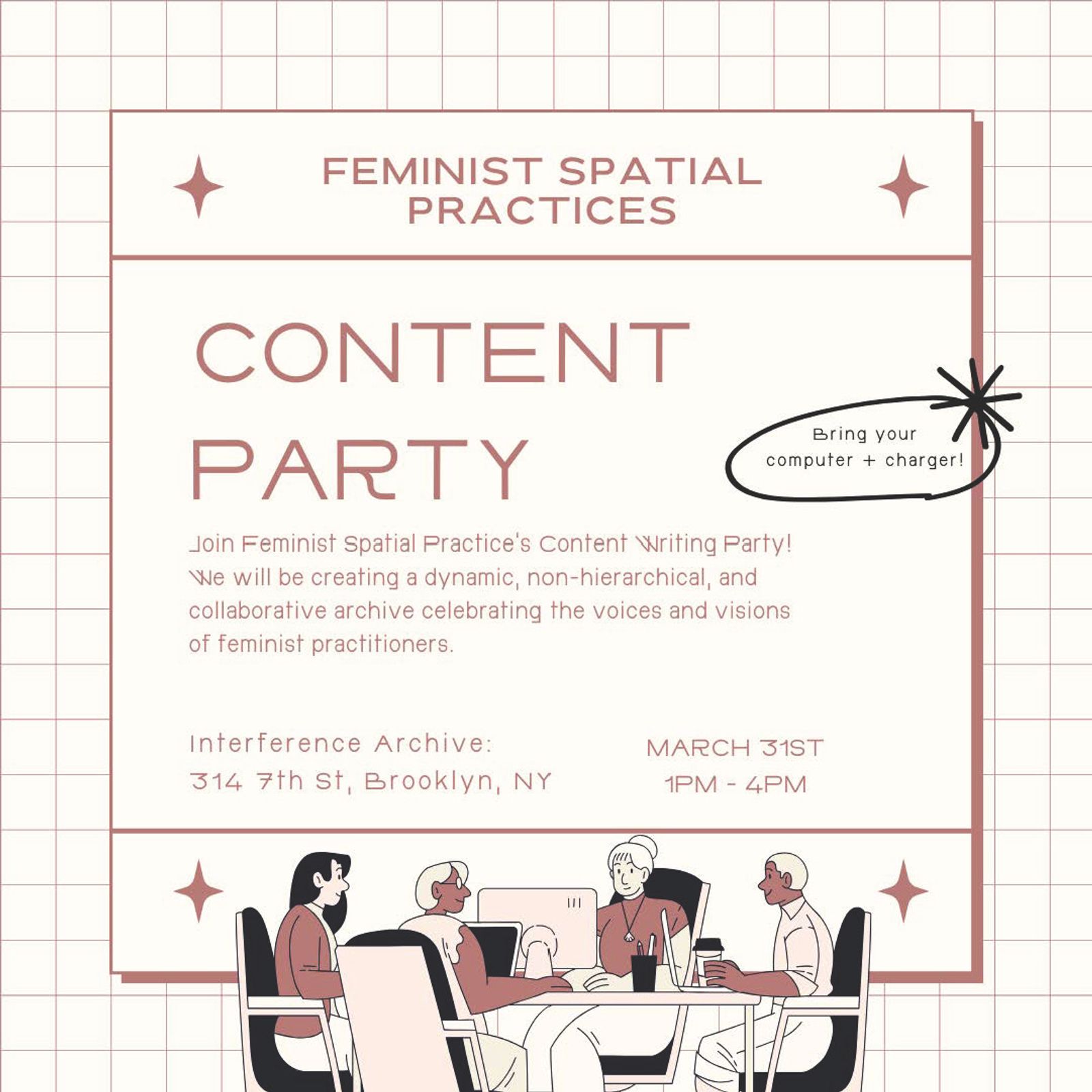 We are super close to achieving our internal goals for the Feminist Spatial Practices Web Platform content development! We are hoping to have 550+ entries ready for our Web Developers by April 18th and would love your help in finishing our research and vetting process! Join us on March 31st for some snacks, research, and fun!
