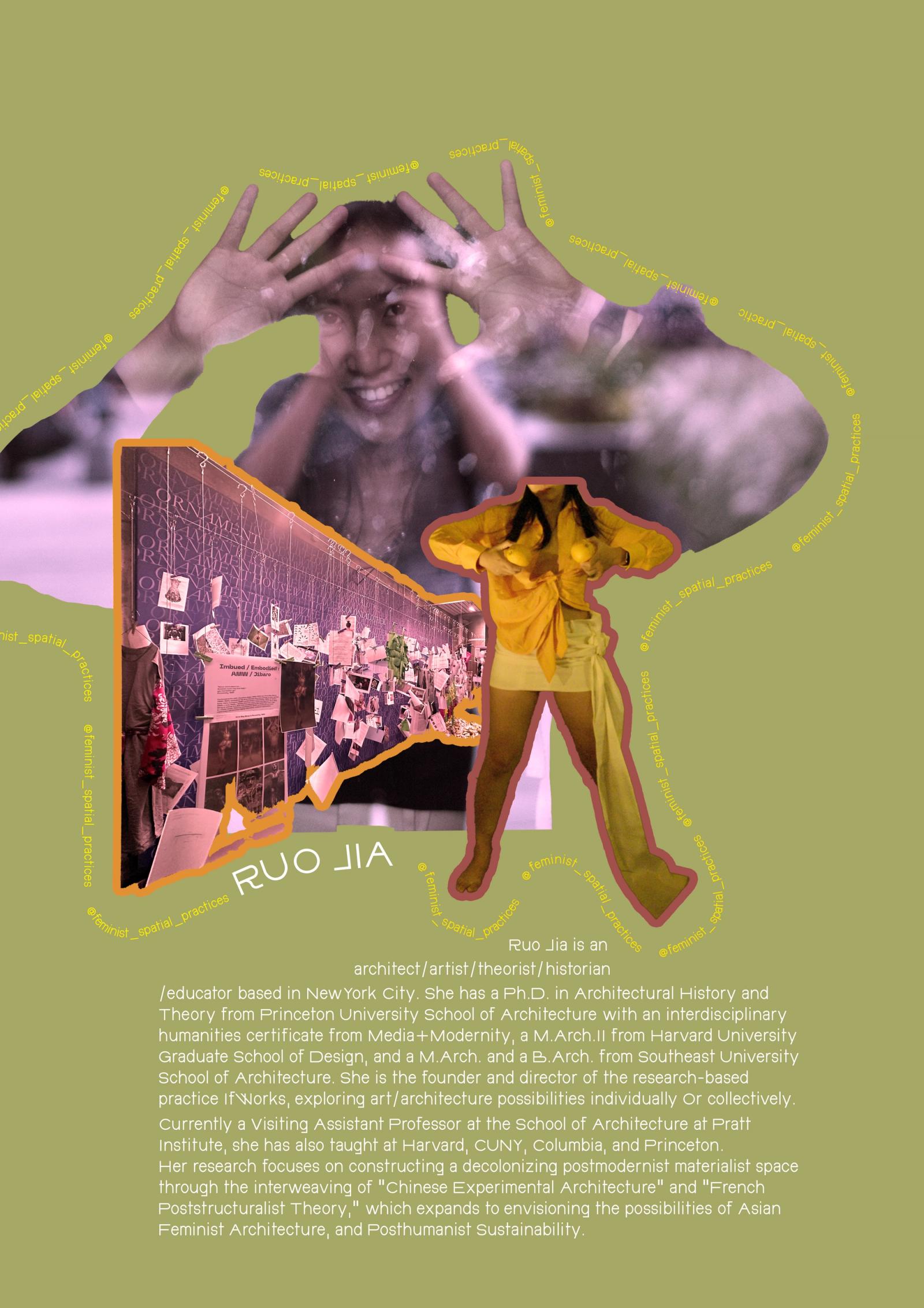 Ruo Jia is an architect/artist/theorist/historian/educator based in New York City. She has a Ph.D. in Architectural History and Theory from Princeton University School of Architecture with an interdisciplinary humanities certificate from Media+Modernity, a M.Arch.II from Harvard University Graduate School of Design, and a M.Arch. and a B.Arch. from Southeast University School of Architecture. She is the founder and director of the research-based practice IfWorks, exploring art/architecture possibilities individually or collectively. Currently a Visiting Assistant Professor at the School of Architecture at Pratt Institute, she has also taught at Harvard, CUNY, Columbia, and Princeton. Her research focuses on constructing a decolonizing postmodernist materialist space through the interweaving of “Chinese Experimental Architecture” and “French Poststructuralist Theory,” which expands to envisioning the possibilities of Asian Feminist Architecture, and Posthumanist Sustainability.