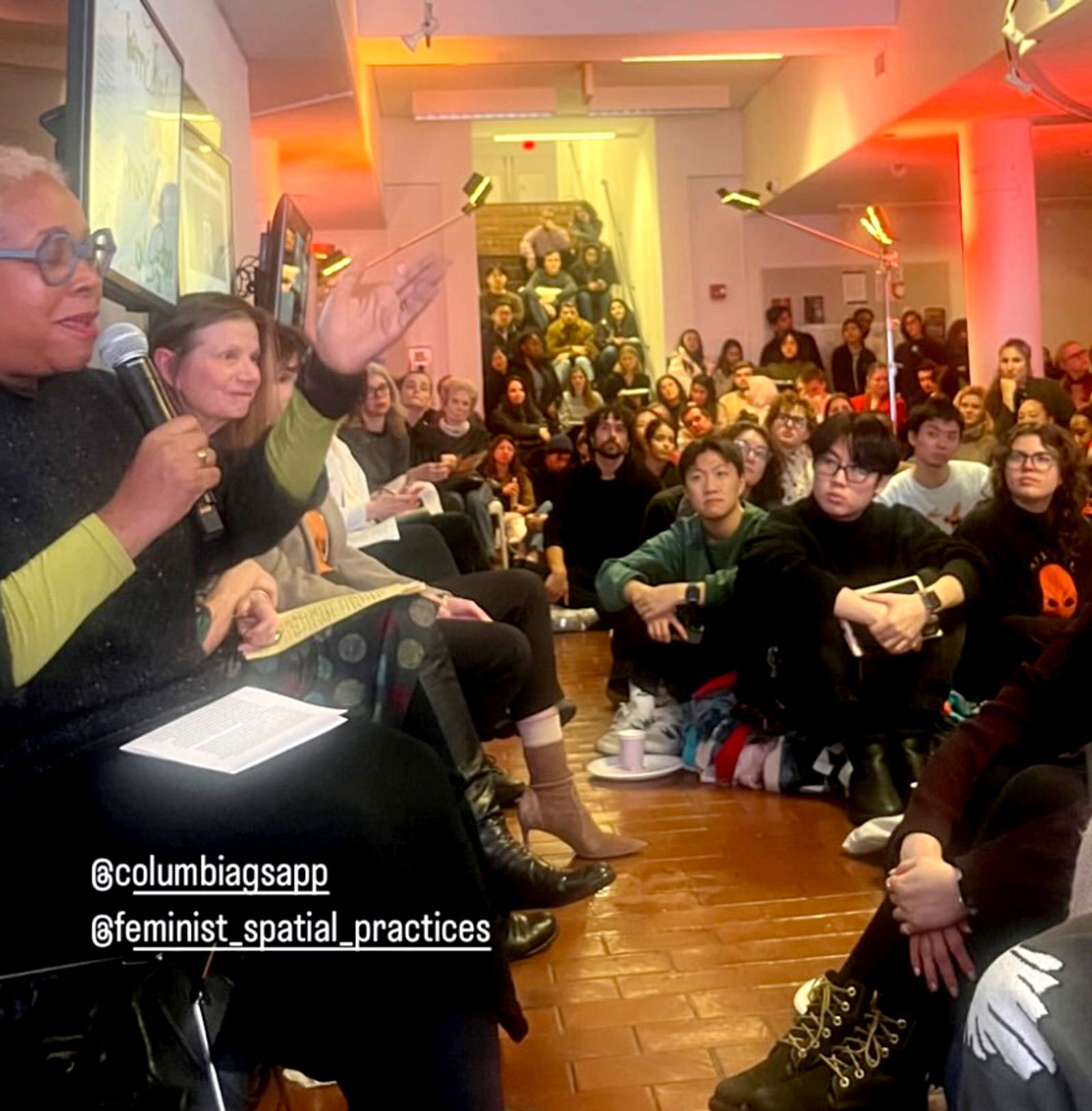 Columbia GSAPP hosted an evening of talks and discussion on the topic of feminist spatial practice with Feminist Spatial Practices and several of its New York-based collaborators: Kadambari Baxi (Barnard), Lola Ben Alon (GSAPP), Black Student Alliance at Columbia GSAPP, Jennifer Carpenter and Irina Verona (GSAPP, Verona Carpenter Architects), Ignacio Galán (Barnard), Rosana Elkhatib (f-architecture), Jack Halberstam (Columbia), Ivan Lopez Munuera (Bard), Mirea Luzárraga (GSAPP, TAKK), Mary McLeod (GSAPP), Mary Miss, Hilary Sample (GSAPP, MOS), Anooradha Siddiqi (Barnard), Mabel O. Wilson (GSAPP, AADS)